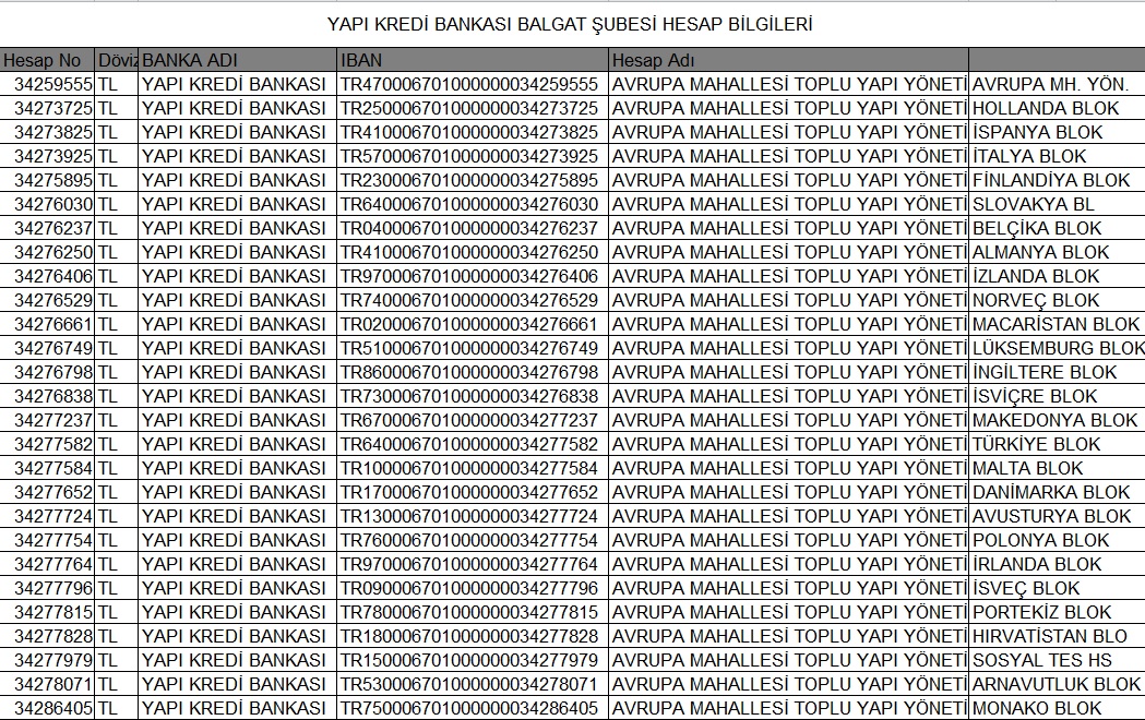 BANKA HESAP NUMARALARI